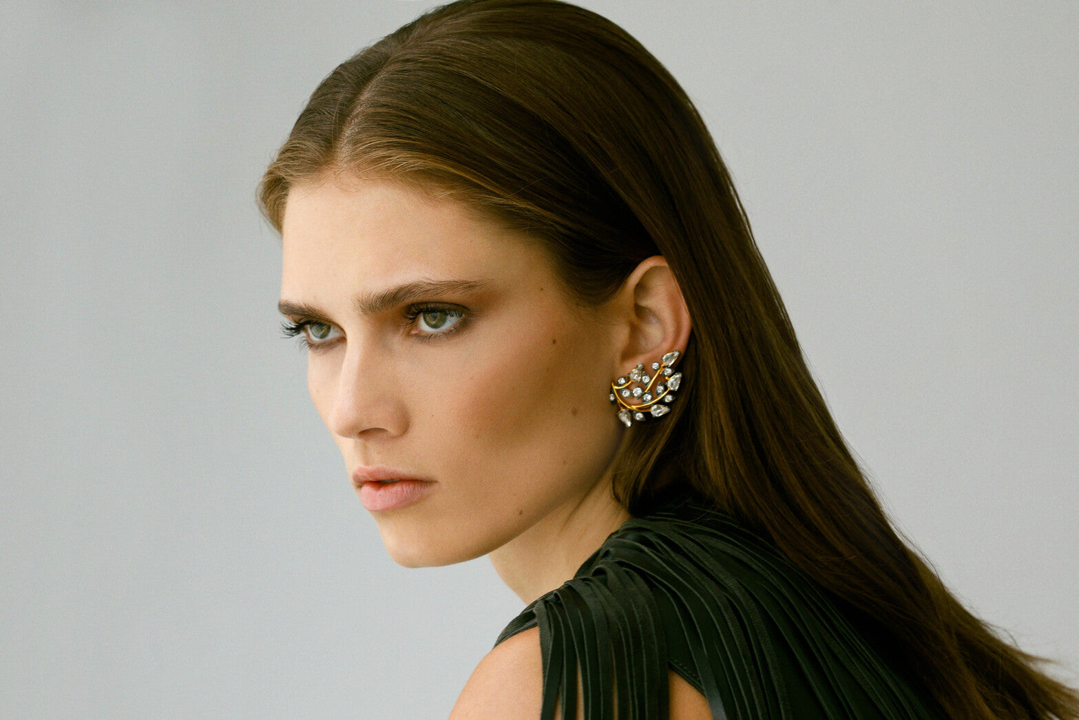 Inspirados en la elegancia orgánica de la naturaleza, los pendientes Leaf se convierten en un statement de sofisticación moderna. Su base de latón bañada en oro de 24 quilates sostiene circonitas de brillo intenso, realzadas con el acabado en rutenio negro que aporta el inconfundible blackish de Theodore. Un diseño envolvente y luminoso que viste la oreja con fuerza y delicadeza al mismo tiempo, perfecto para elevar cualquier look.